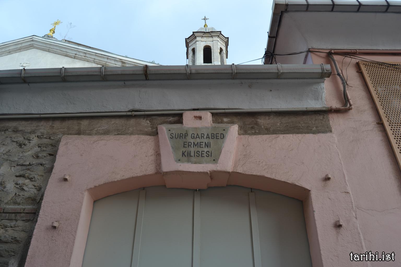 Avlusunda üç çeşme olan Kilise’nin beş adet kapısı bulunmaktadır. Kilise’nin giriş avlusunun üstünde çift katlı bir galeri bulunmaktadır. Kilise’nin ön bölümünün sağında ve solunda ise şapeller bulunur. Bu semt 18. – 19. yüzyılda önemli bir kültür merkezi olmuştur. Patrik Golod İstanbul’daki ilk okulu Surp Garabed Kilisesi’nin yanında açmıştı.